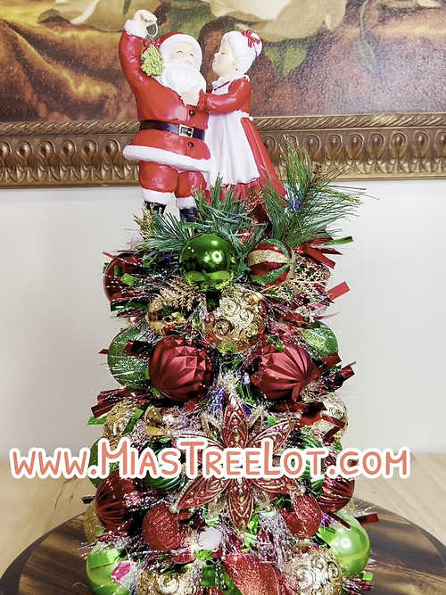 The foundation of this piece is a natural grapevine topiary base. The core dimensions are approximately 18 inches high (excluding the tree topper) and 7 inches wide (not including any decorations).